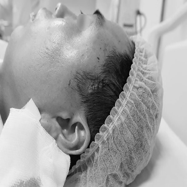 Cách đó vài chục phút, nam bệnh nhân thực hiện phẫu thuật thẩm mỹ độn thái dương tại một cơ sở thẩm mỹ ở Cầu Giấy, Hà Nội.